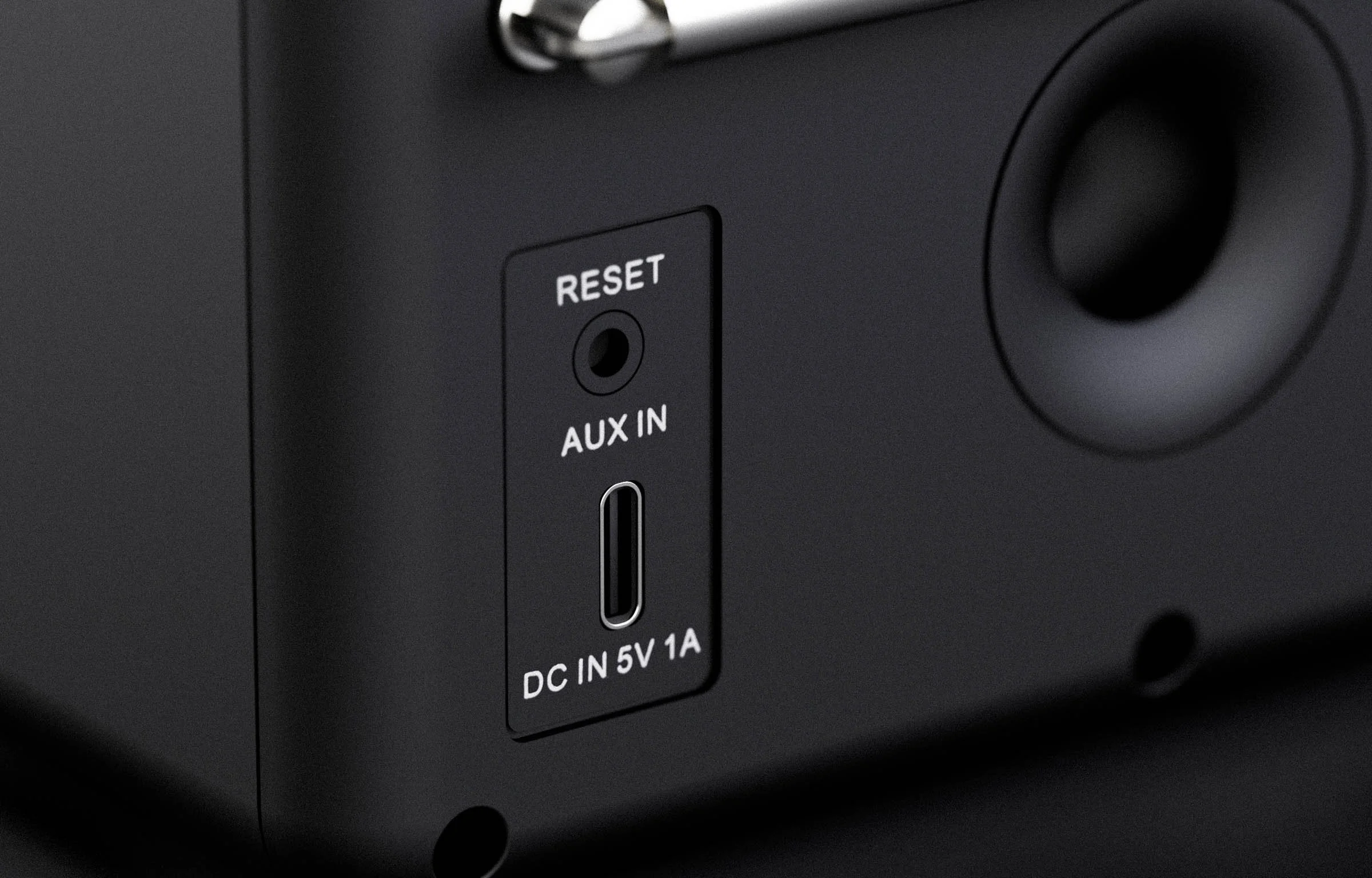 Pinell Compact har USB-C-tilkobling for rask og enkel lading, samt AUX-inngang for tilkobling av annet lydutstyr.
